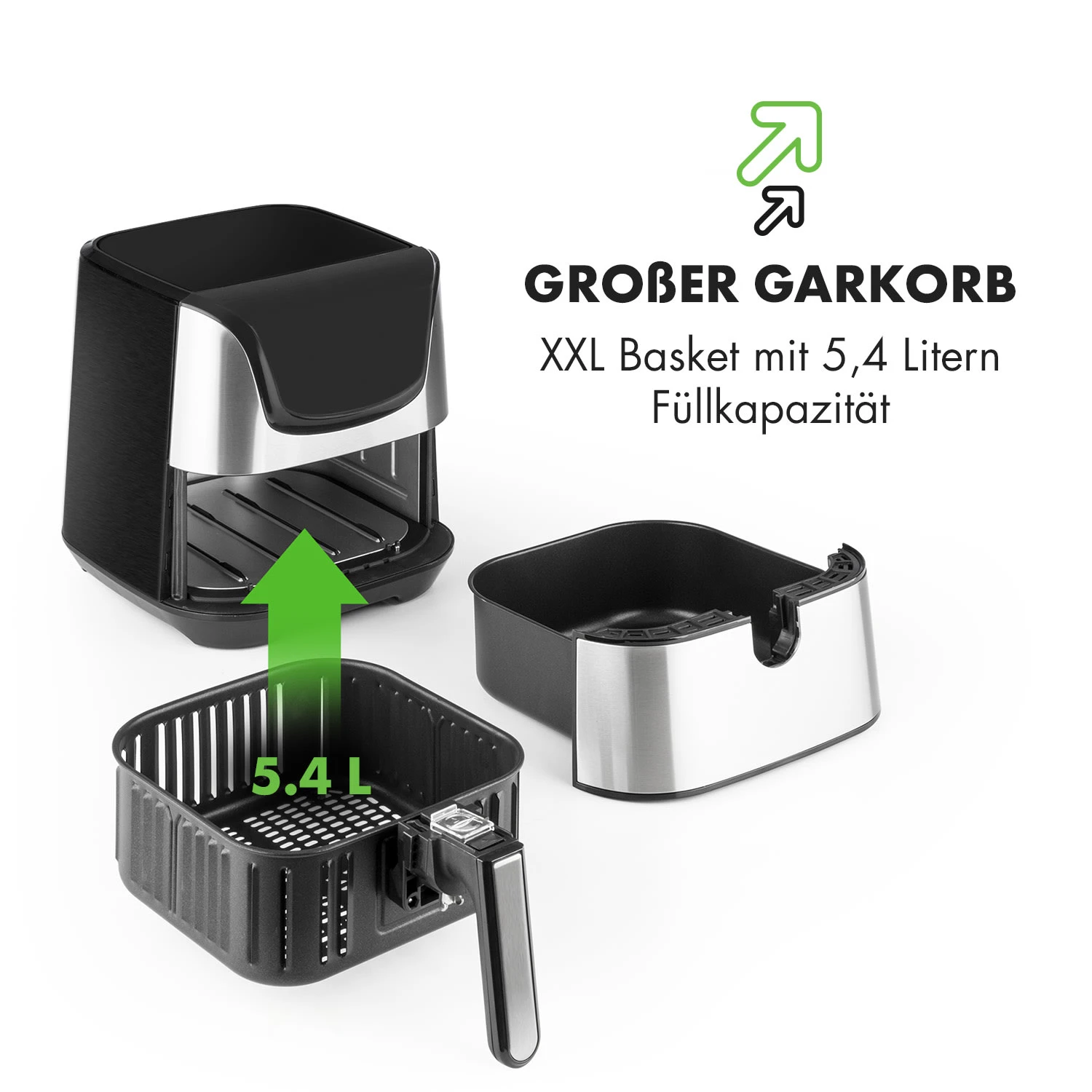 Mit der Klarstein AeroVital Deluxe Heißluftfritteuse gelingt das fettarme Garen von Lebensmitteln schnell und einfach. Durch die zirkulierende Heißluft frittiert, backt, grillt oder röstet die AeroVital Deluxe mit starken 1700 Watt. Dabei wird die Wärme mit der Highspeed-convection-technology schnell und optimal verteilt und gart Lebensmittel von allen Seiten schonend und rasant, ein Auftauen ist dabei nicht nötig.