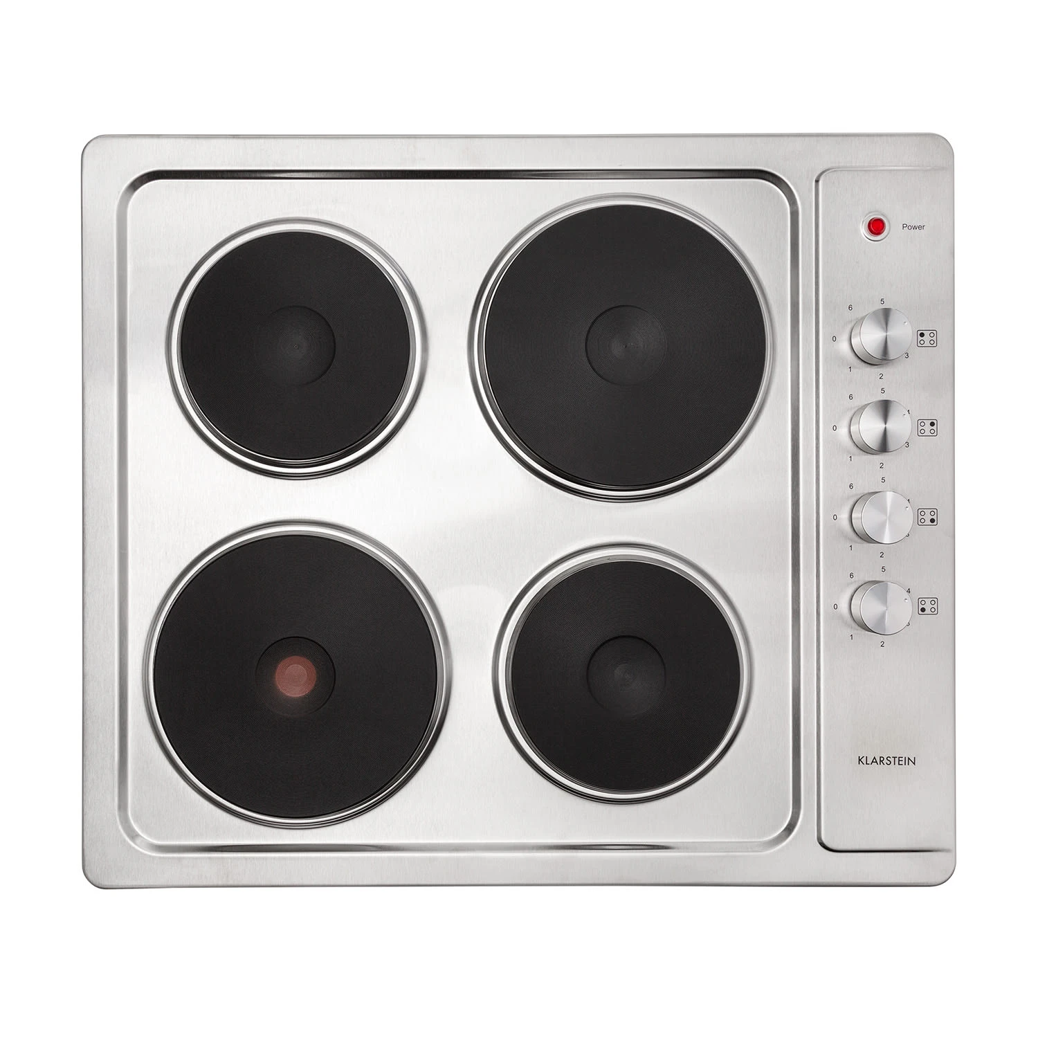 Simpel, leistungsstark und genial einfach: Das robuste Klarstein Appetito 4 Elektrokochfeld überzeugt durch seinen supereinfachen Gebrauch, das klassische Design und seine Leistungsstärke. Vier Kochfelder mit 1 x 2000, 2 x 1000 Watt und 1 x 1500 Watt, vier Drehknöpfe mit 6 Leistungsstufen und eine LED-Signalleuchte: Fertig ist das Einbaukochfeld, das in jeder Küche seinen Platz findet. Für ein glänzendes Finish sorgt die leicht zu reinigende Edelstahloberfläche.