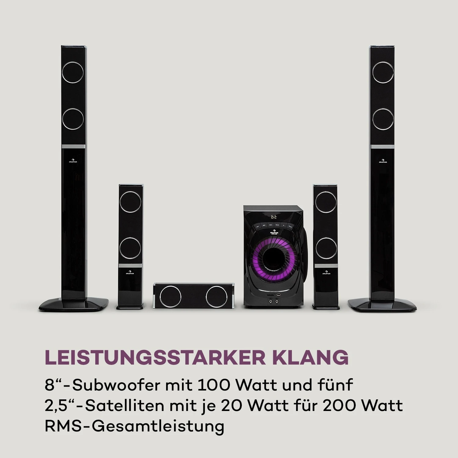 Mit der auna Areal 825 5.1-Heimkino-Anlage kannst du jederzeit echtes Kino-Feeling im Wohnzimmer genießen!