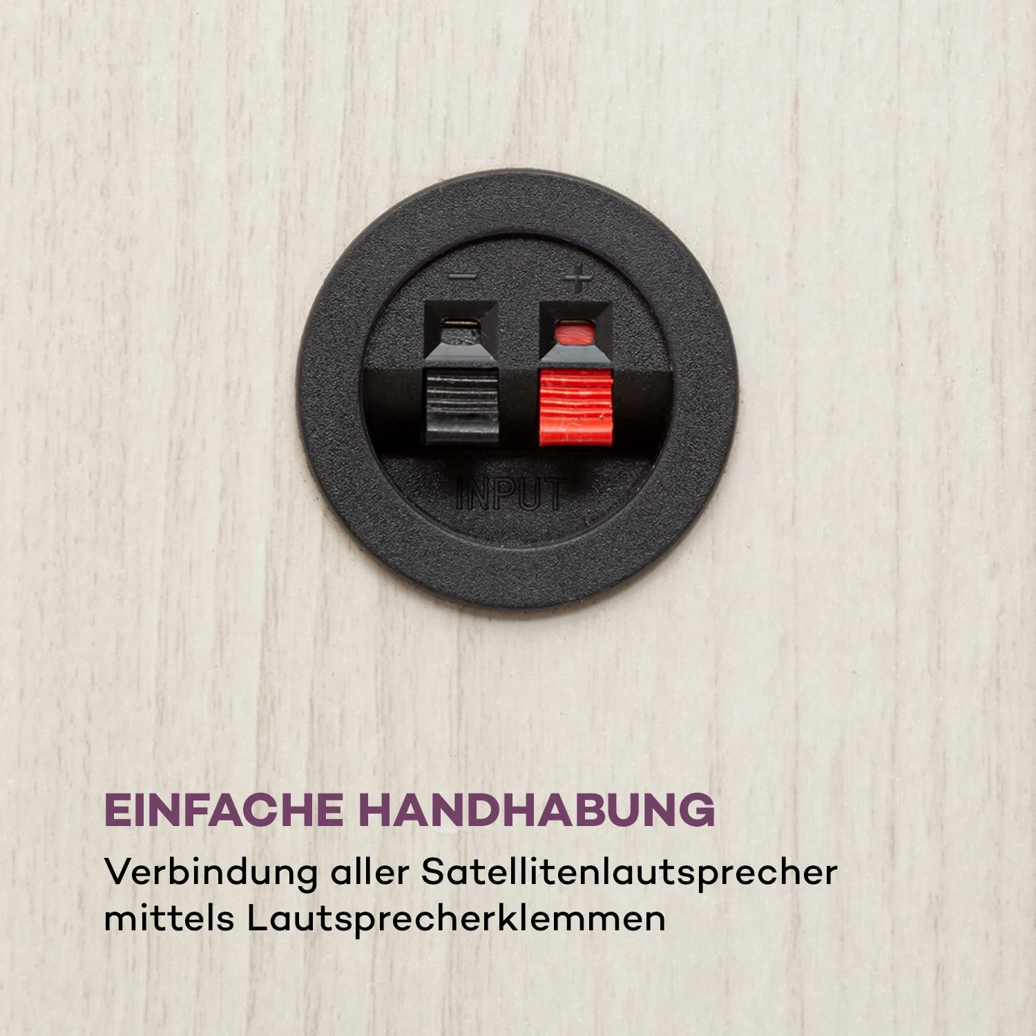 - Anschlüsse-Satellitenlautsprecher: 1 x Satz-Lautsprecherklemmen