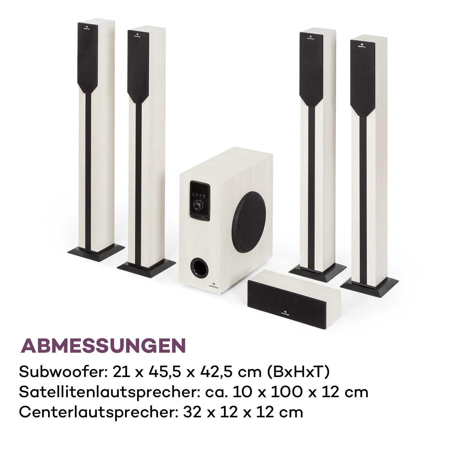 Wie im Kino! Mit dem auna Areal Elegance 5.1-Kanal-Surround-System erlebst du Filme, Videospiele und Musik dank hochwertigem Sound als intensives Rundum-Klangerlebnis!