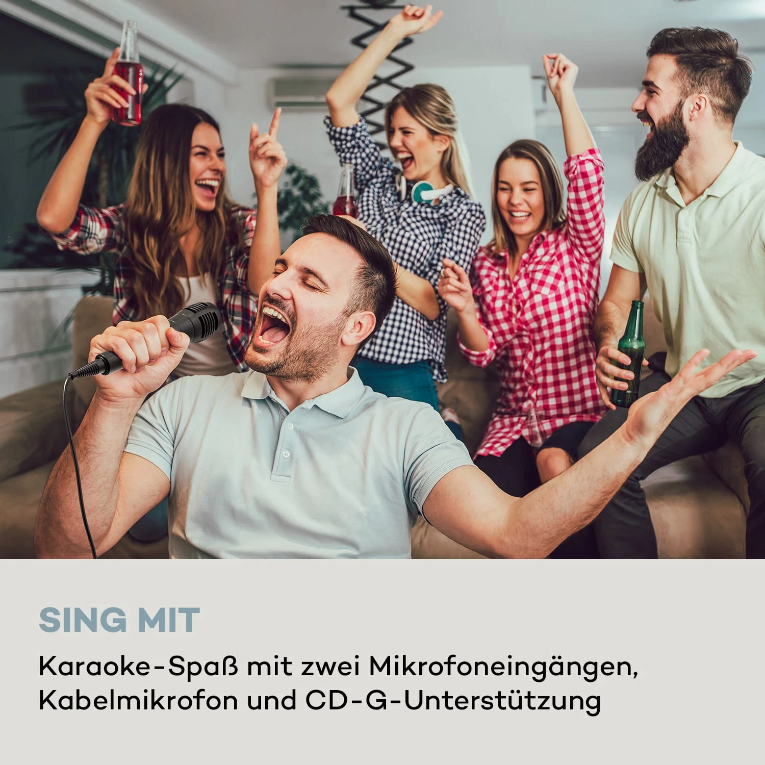 Das Beste von früher und heute: Mit der auna Arizona Sing Jukebox die schönsten Erinnerungen Revue passieren lassen, von den Vorzügen neuester Technik profitieren und lustige Karaoke-Abende im Kreis von Freunden und Familie erleben.