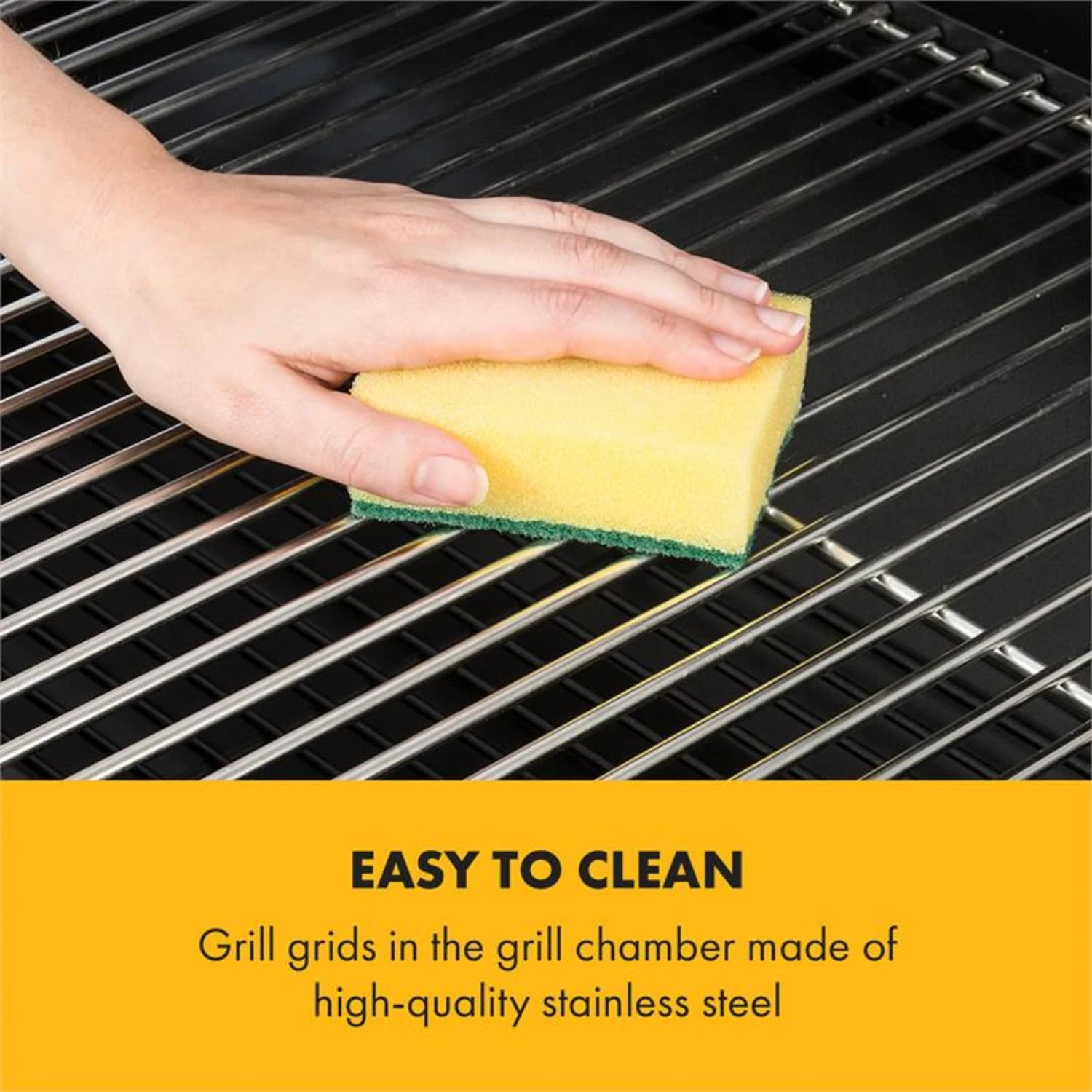 Wer lieber auf den typischen Rauchgeschmack verzichten möchte, kann natürlich auch ausschließlich mit direkter Hitzeeinwirkung garen: Auch hierfür eignet sich der Beef Brisket Grill ausgezeichnet. Auf die Grillroste passt mit einer Größe von 60 x 39 cm jede Menge Grillgut, nach dem Zubereiten lassen sie sich zudem dank des rostfreien Edelstahls besonders einfach reinigen. Ein verchromter Ablagerost kann hervorragend zum Warmhalten von Speisen verwendet werden.