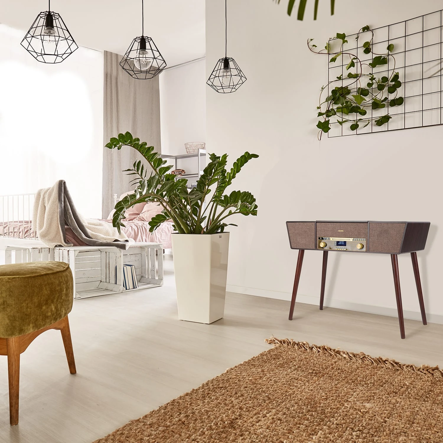 Das anmutige Retro-Gehäuse aus solidem MDF mit 4 abnehmbaren Standbeinen macht den Retro-Plattenspieler Belle Epoque 1912 von auna zum abwechslungsreichen Design-Objekt.