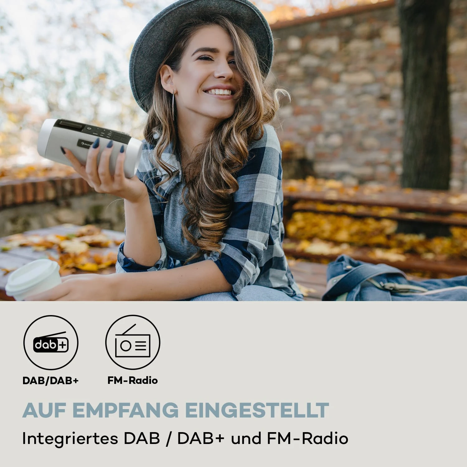 Bring das Extra an Boom in dein Leben! Der auna Blaster DAB Bluetoothlautsprecher ist immer dabei und rockt die Hütte!