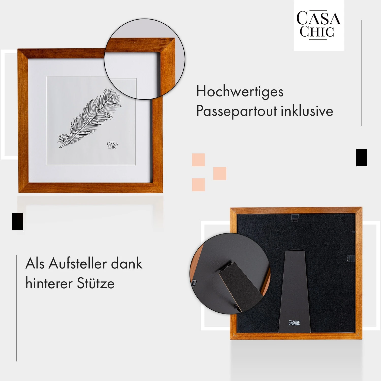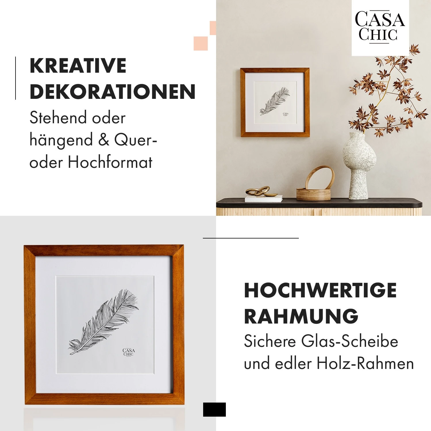 Der exklusive Bilderrahmen Bristol von Casa Chic by blumfeldt gibt jedem Bild den perfekten Rahmen. Hier verbindet sich hochwertige Qualität aus Handarbeit mit besonders stilvollem Design. Hinter dem bruchfesten Sicherheitsglas finden Kunstobjekte, Drucke oder Fotografien optimalen Schutz vor Staub, Feuchtigkeit und Licht. Die Tiefe des Bristol Bilderrahmen hebt dabei deine Bilder in jedem Raum wundervoll hervor und das breite Rahmenprofil wird zum eleganten Kontrast. Der hochwertige Fotorahmen ist an der Rückseite mit einem Aufsteller und einer Aufhängung versehen. Ohne Passepartout ist er passend für das Bildformat 25 x 25 cm und hinter dem dazugehörigen Passepartout kannst du Fotos und Bilder mit einem Format von 17,5 x 17,5 cm kunstvoll präsentieren.