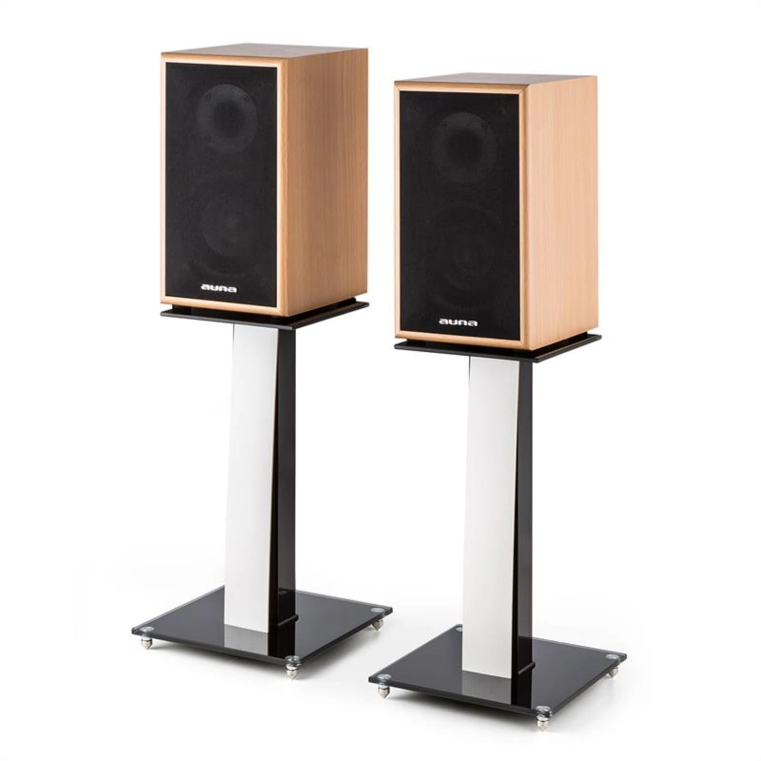 Die beiden auna BS-03S-WHOA Lautsprecherständer verbinden hochwertige Materialien mit einem eleganten Design und bodenständigen Produktmerkmalen.