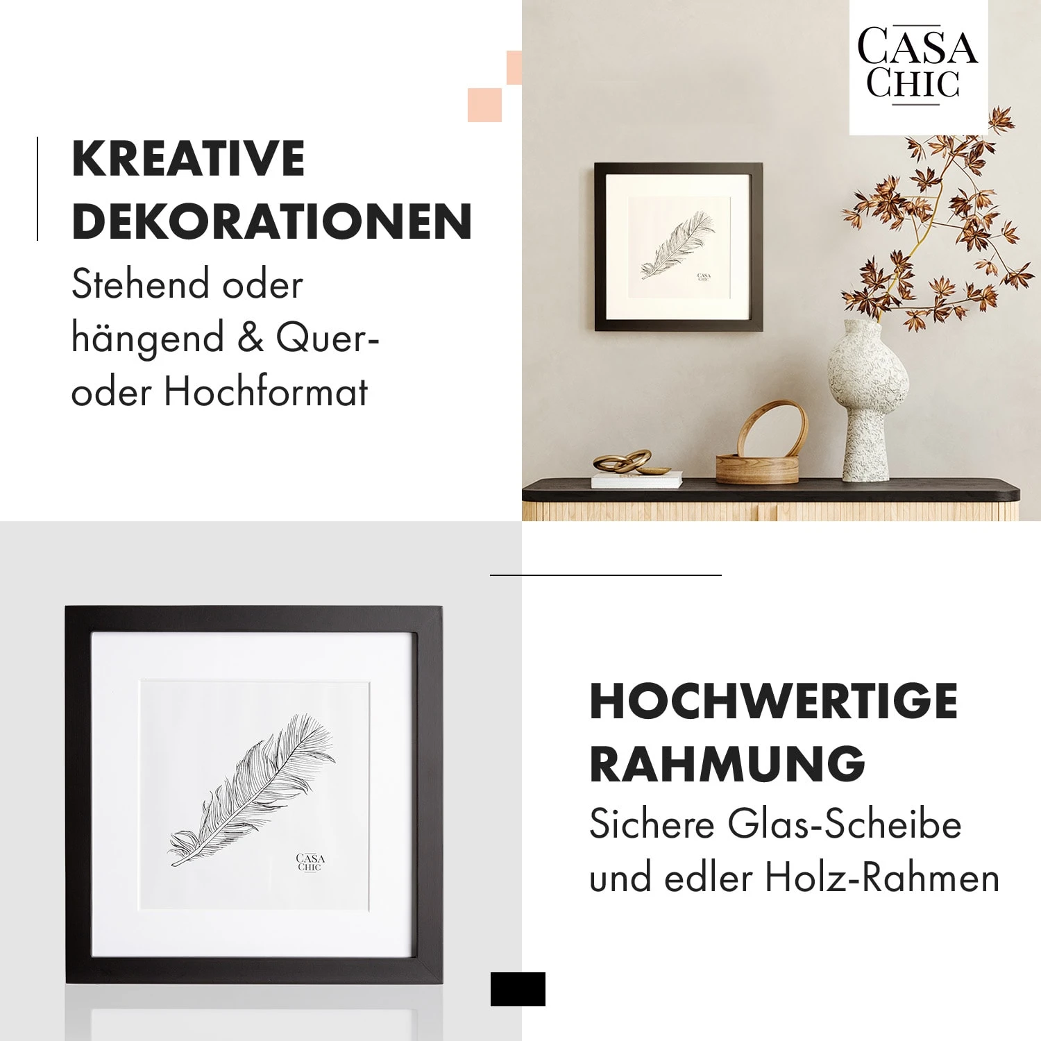 Setze Fotos und Bilder gekonnt in Szene: Die exklusive Cannon Bildeinfassung von Casa Chic by blumfeldt schenkt jedem Foto den perfekten Rahmen – mit oder ohne Passepartout. Hier vereinen sich hochwertige Handarbeit und ein stilvoller Look zu einem ganz besonderen Design. Das bruchfeste Sicherheitsglas schützt deine Kunstobjekte, Drucke oder Fotografien optimal vor Schmutz und Staub. Dank seines 2 x 2 cm starken Rahmenprofils hängt der Cannon bündig an der Wand. Natürlich macht der Fotorahmen auch als Aufsteller auf deinem Sideboard eine klasse Figur.