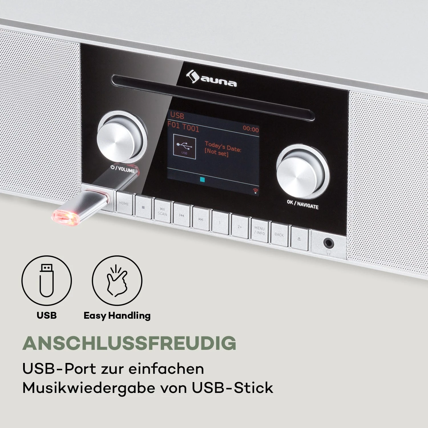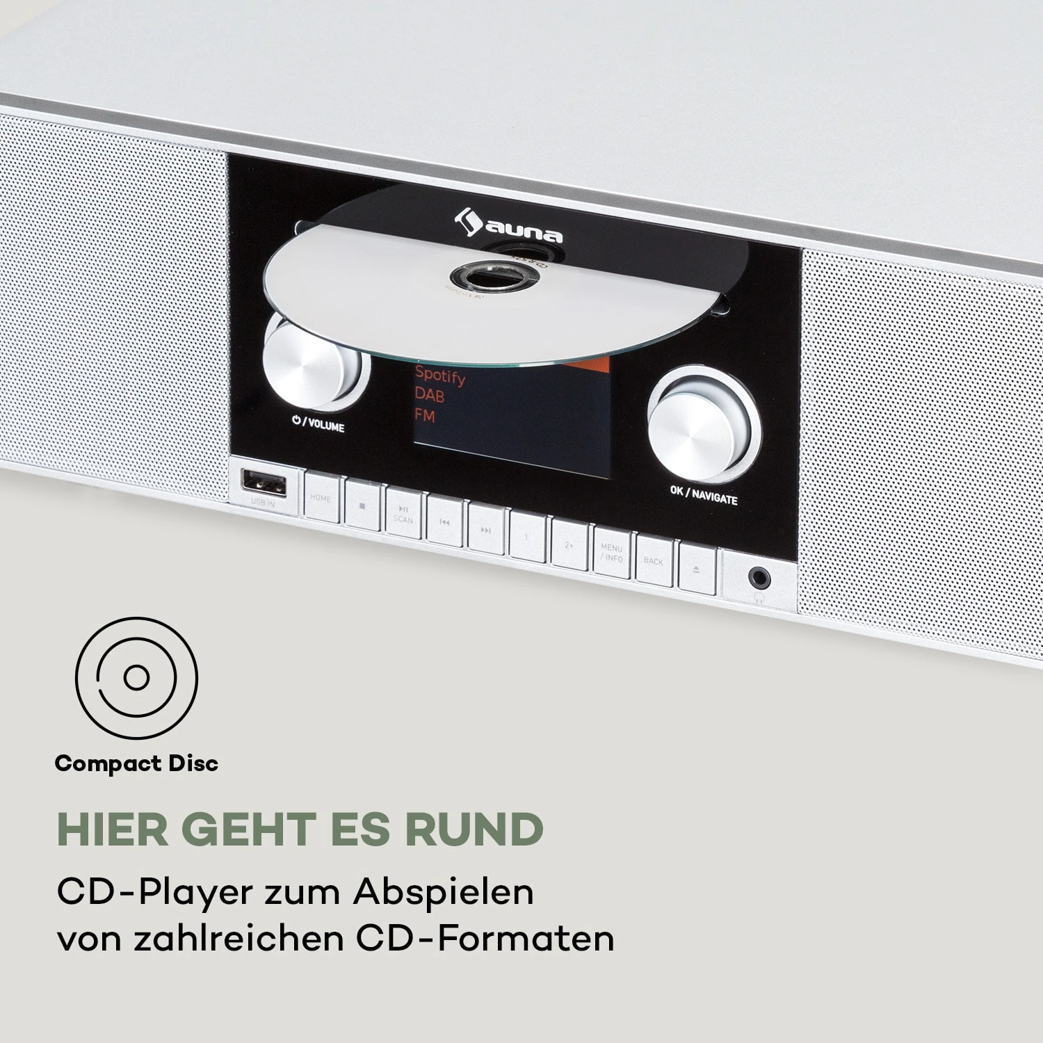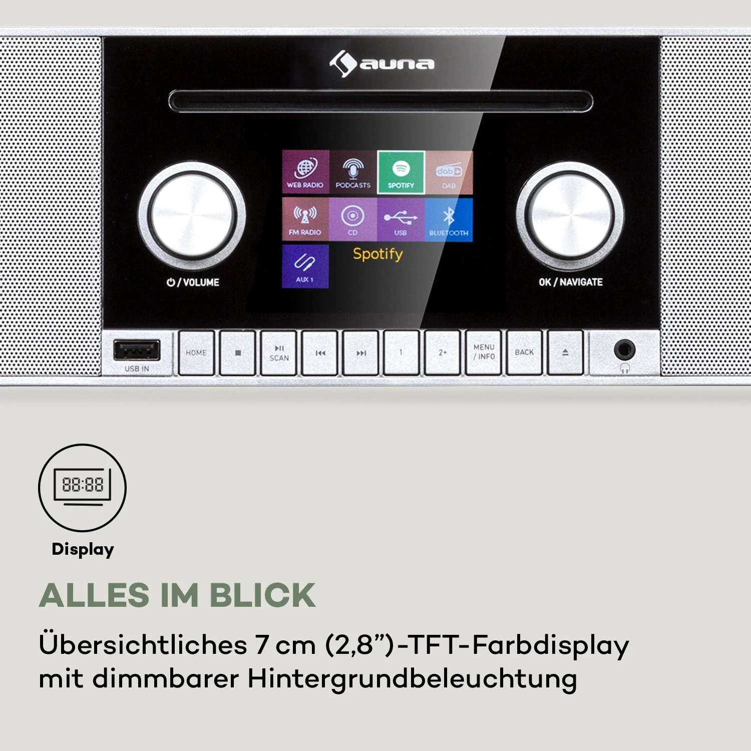 Mit auna´s Connect CD MKII Digitalradio ist musikalische Abwechslung nur einen Knopfdruck entfernt. Musiktitel und Nachrichten werden elegant und in bester Tonqualität geliefert.