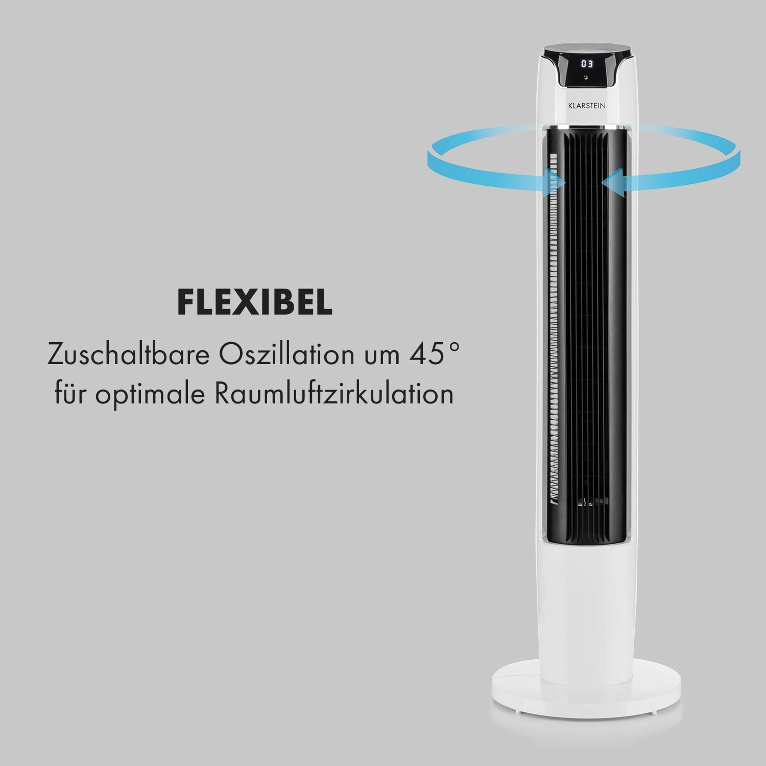 Das elegante Äußere des Klarstein Empire State Säulenventilators fügt ihn ideal in Büro- oder Wohnräume ein. Der Sommer kann kommen!