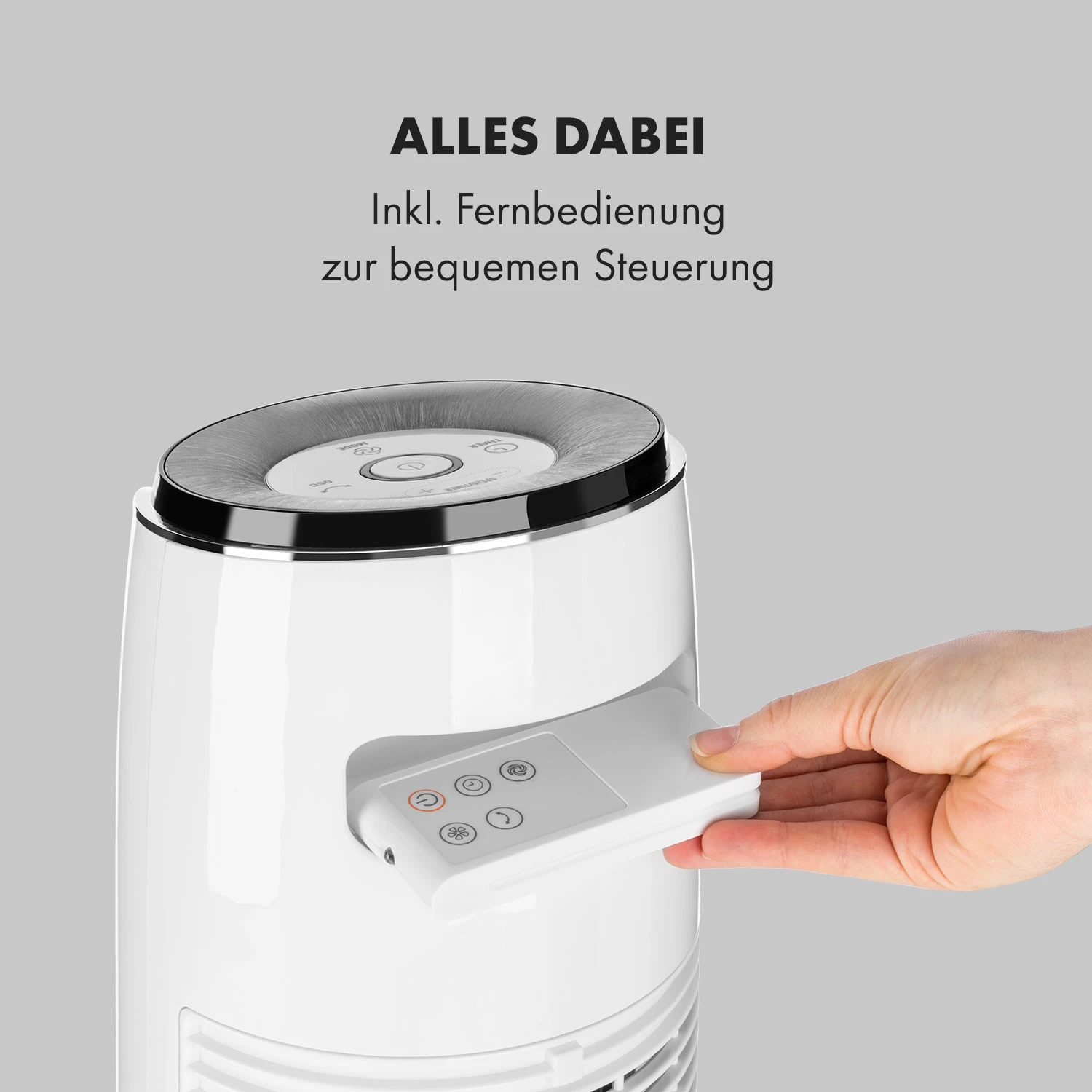 Neue Kraft in der Sommerhitze: Dank Klarsteins Empire State Säulenventilator gelangst du mit frischem Wind zur verdienten Abkühlung. Der Klarstein Empire State Säulenstandventilator besitzt gleich sechs Geschwindigkeitsstufen, die vom sanften Hauch bis zum starken Strom jeden Frischluftwunsch wahr werden lassen. Der Ventilator arbeitet dank neuem Design des Luftstromkanals 36 Prozent effektiver als vergleichbare Geräte. Der verbraucht nur 37 Watt in der Stunde und arbeitet mit einem Luftdurchsatz von bis zu 2200 m³/h. Für eine optimale Verteilung der Frische im Raum sorgt die automatische 45° Oszillation. Drei verschiedene Ventilationsmodi stehen zur Auswahl – neben dem normalen Modus auch ein Naturwind- und ein Schlummermodus. Die Bedienung ist kinderleicht, der Turmventilator verfügt über eine praktische Timer-Funktion und am LED-Display kannst du Temperatur und alle Einstellungen ideal überblicken.
