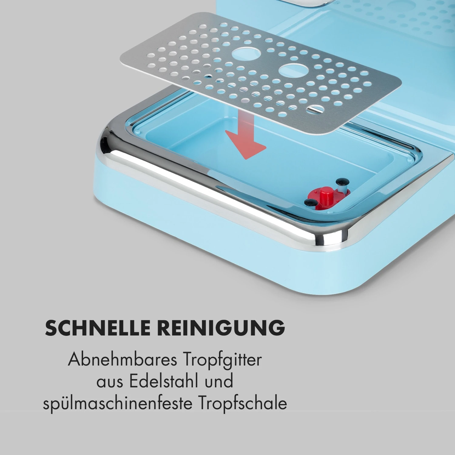 - abnehmbare Tropfschale mit Edelstahlgitter