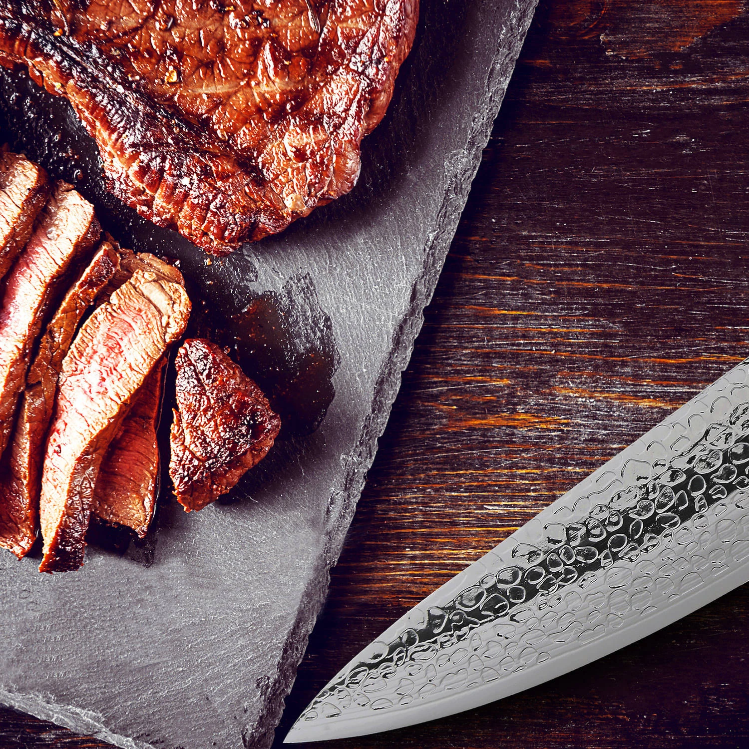 Unsere Spitzenserie wurde für passionierte Köche entwickelt, die nach Perfektion streben. Die Infinity Executive-Plus Messerserie von Zelite Infinity by Klarstein bietet herausragende Leistung und unvergleichliche Schönheit für jede Küche. Mit einem einzigartig gestalteten Griff mit Buckelrücken und ultratiefen Klingen aus 45-lagigem japanischem Premium-Damaszenerstahl.