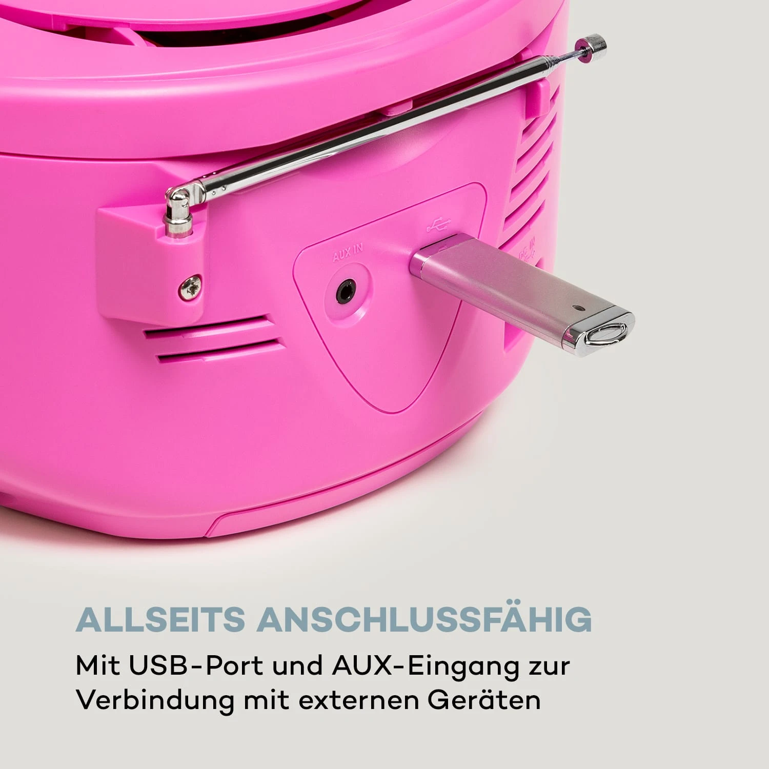 - Eingänge: AUX-Eingang, USB-Port