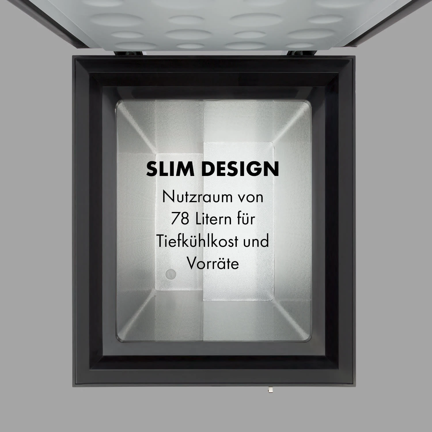Lebensmittel langfristig tiefgekühlt lagern: Mit der Klarstein Iceblokk 80 Gefriertruhe funktioniert´s einwandfrei. Ideal für Singles und Kleinhaushalte bietet der geräumige Tiefkühler die perfekte Möglichkeit, Vorräte praktisch aufzubewahren. Und das Beste: Ein Schloss am Truhendeckel verhindert ungewollten Zugriff auf die Tiefkühlkost. Mit 78 Litern Nutzinhalt bietet der 4-Sterne-Gefrierraum ausreichend Platz und es gelingt dir eine leichte Entnahme von oben. Ein herausnehmbarer Hängekorb untermalt hier den Komfort. Die Tiefkühlleistung kannst du zwischen -15 und -26 °C über einen stufenlosen Drehregler an der Gerätefront einstellen, dabei arbeitet die Gefriertruhe sehr sparsam.