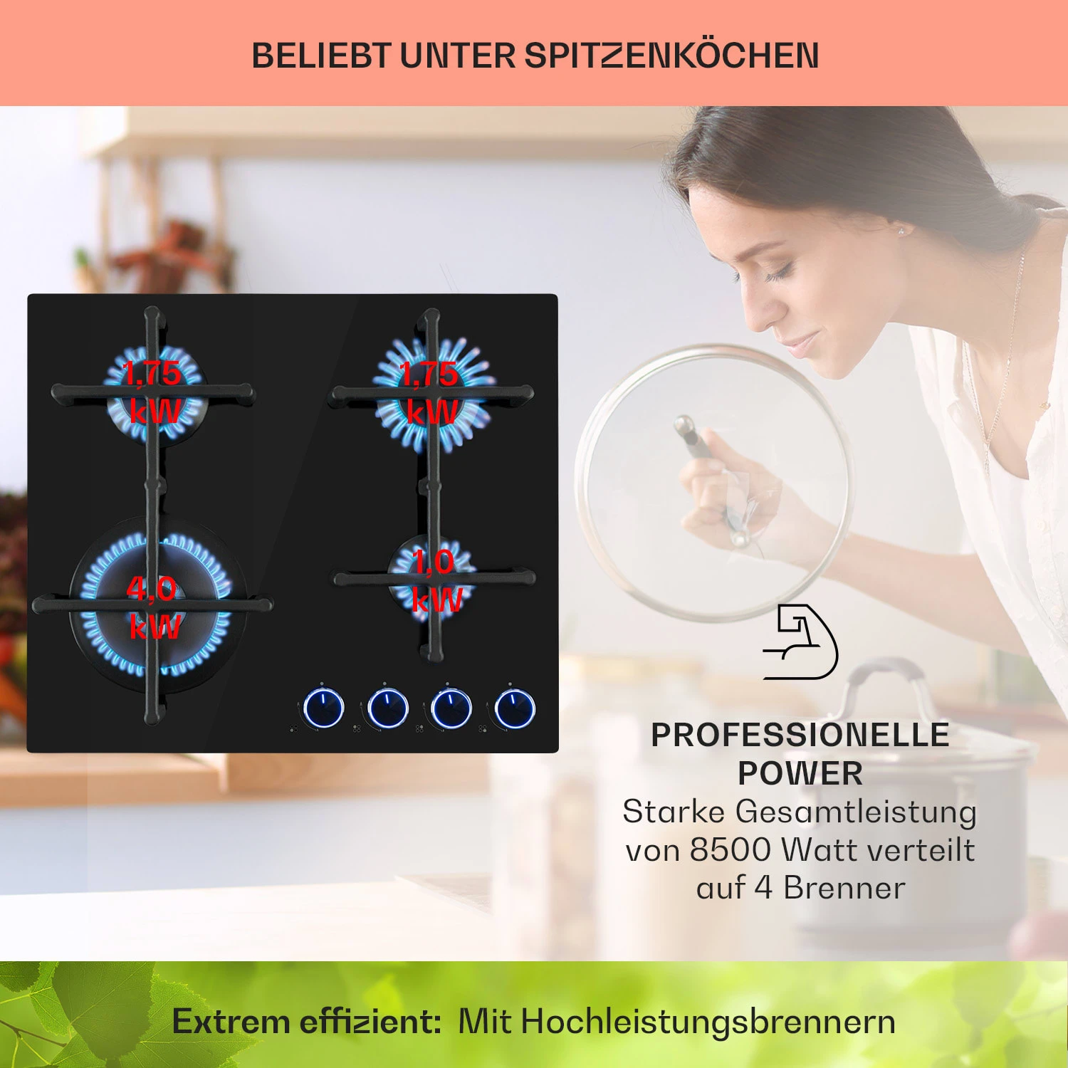 Illuminosa 4 Gaskochfeld 4-flammig Sabaf-Brenner Glaskeramik