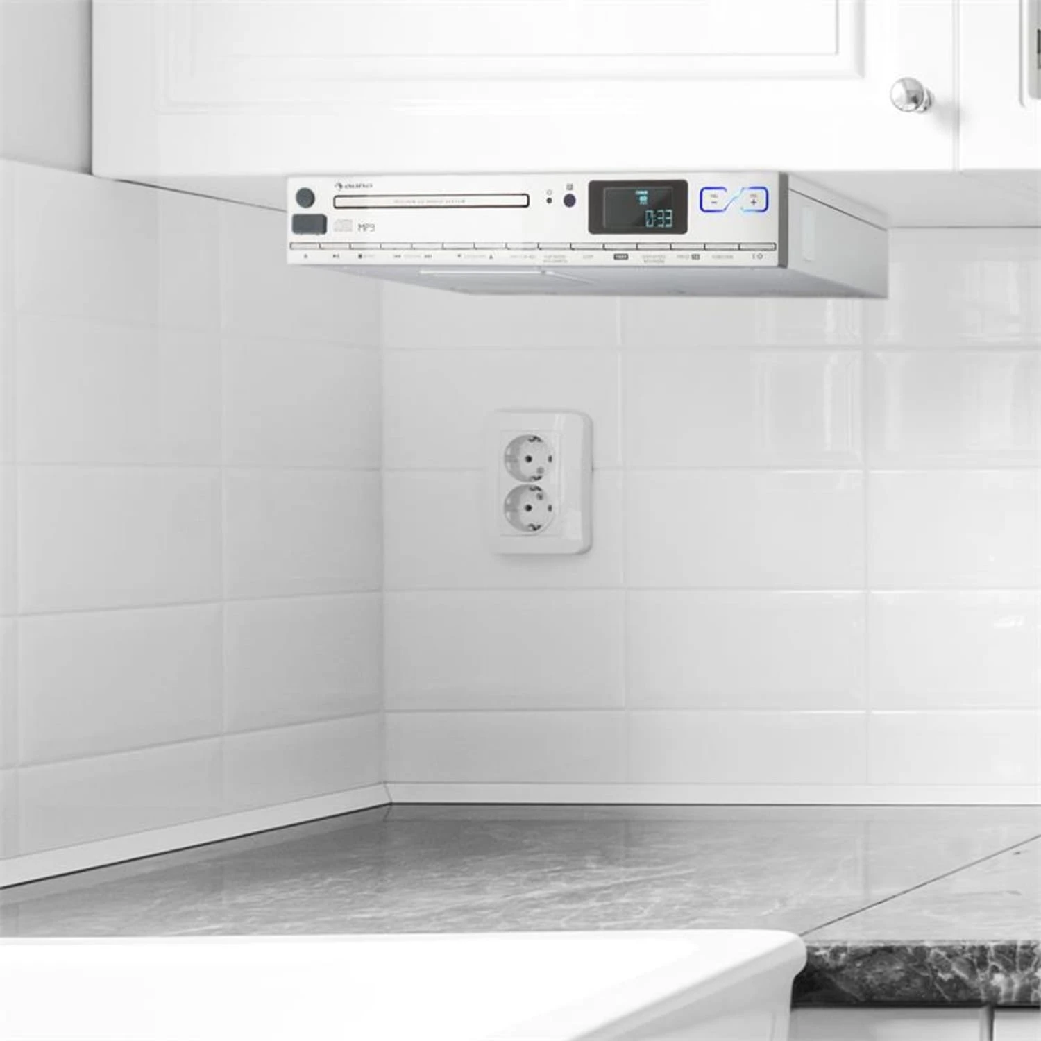 Das auna KCD-20 Unterbauradio lässt sich platzsparend direkt an der Unterseite von z.B. Hängeschränken in der Küche montieren. Das kantige Gehäuse verträgt sich bestens mit unterschiedlichen Einrichtungsstilen während die Aluminium-Look-Frontblende das elegante Designkonzept schlüssig abrundet. Die mitgelieferte Wurfantenne lässt sich flexibel und unauffällig verlegen um einen störungsfreien Empfang zu gewährleisten.