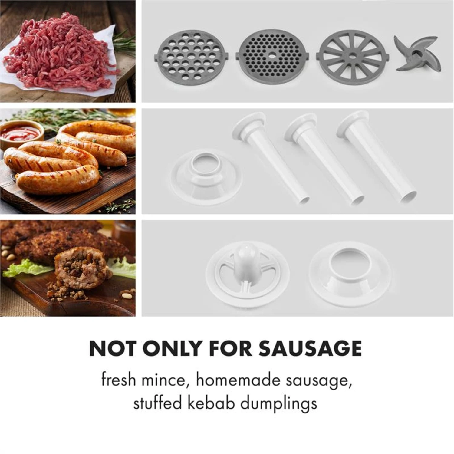 - Wurstfüllset mit drei Füllrohren für feine, mittlere oder grobe Wurstmasse