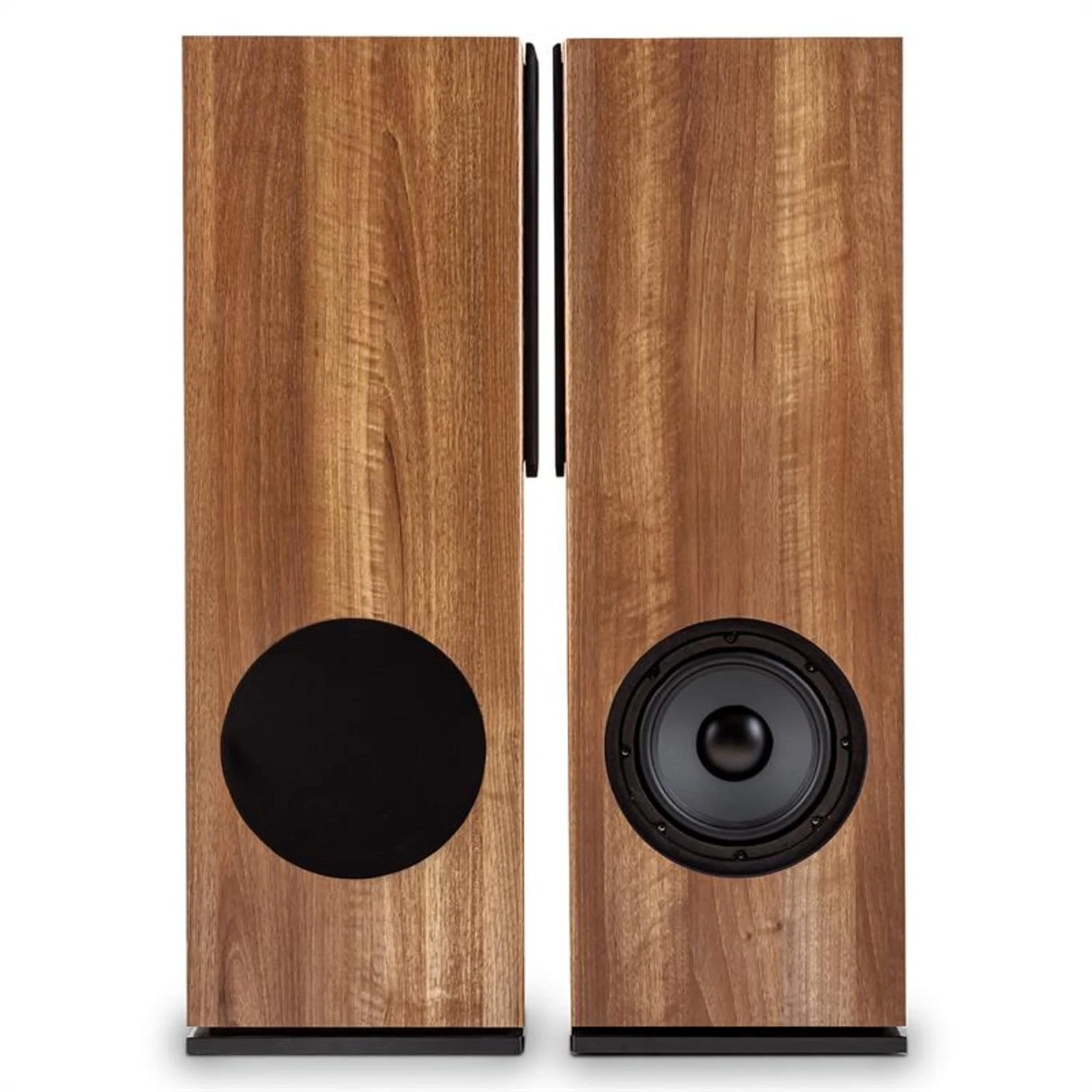 Für ein harmonisches Zusammenspiel mit unterschiedlichen Wohneinrichtungen schmückt sich der aunaLinie 501 FS Standlautsprecher mit einer eleganten, schmalen Formensprache samt Walnuss-Finish sowie abnehmbarer Lautsprecherabdeckung.