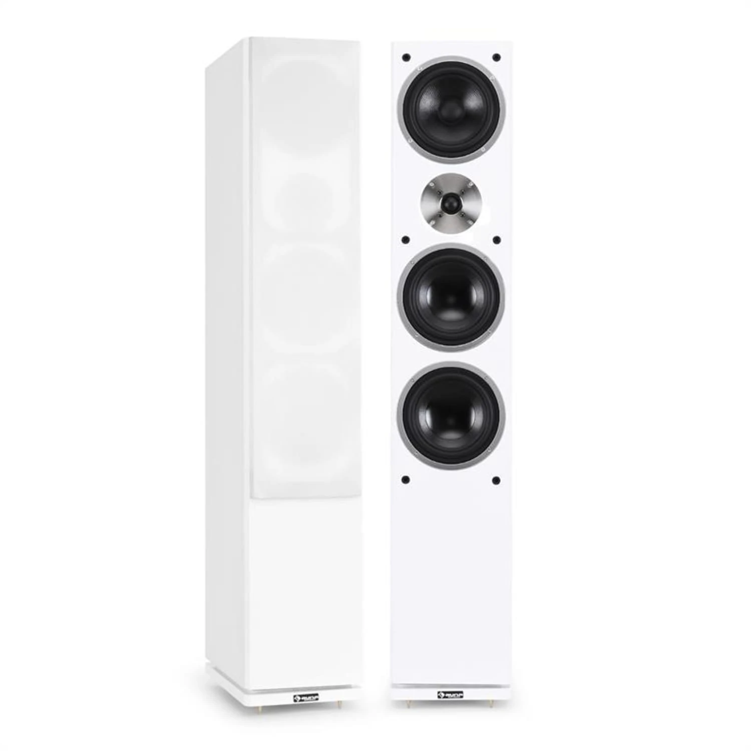 Für ein harmonisches Zusammenspiel mit der Wohneinrichtung schmückt sich der auna HiFi-Standlautsprecher mit einer eleganten, schmalen Formensprache, einem weißen Gehäuse mit Holzmaserung und Hochglanz-Frontblende sowie Hochtöner-Verkleidung aus Aluminium und abnehmbarer Lautsprecherabdeckung.