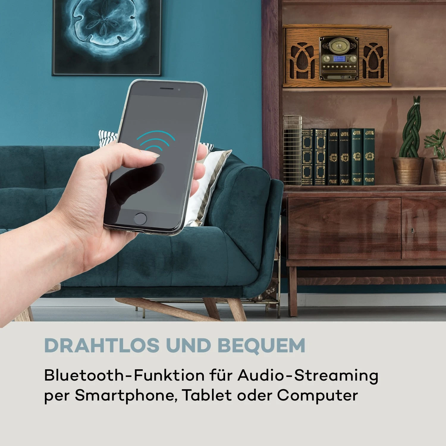 Die NR-620 Stereoanlage von auna fügt sich durch ihr elegantes, gemütliches Design nahtlos ins Wohnambiente ein und begeistert mit ihrer Funktionsvielfalt.