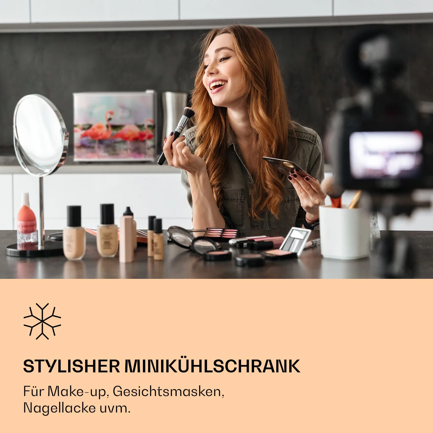 Der Pretty Cool von Klarstein ist ein stylisher Minikühlschrank, der dein Make-up länger frisch hält. Sein 17 Liter großer Innenraum mit einem herausnehmbaren Boden bietet viel Platz für Feuchtigkeitsfluids, Gesichtsmasken und Nagellacke. Der Pretty Cool ist besonders kompakt und findet in jedem Badezimmer seinen Platz. Dank seines leisen Betriebsgeräusches von nur 26 dB kannst du ihn auch ohne Probleme im Schlafzimmer aufstellen. In seinem praktischen Türfach ist ebenfalls Platz für Piccolos oder andere Getränke.