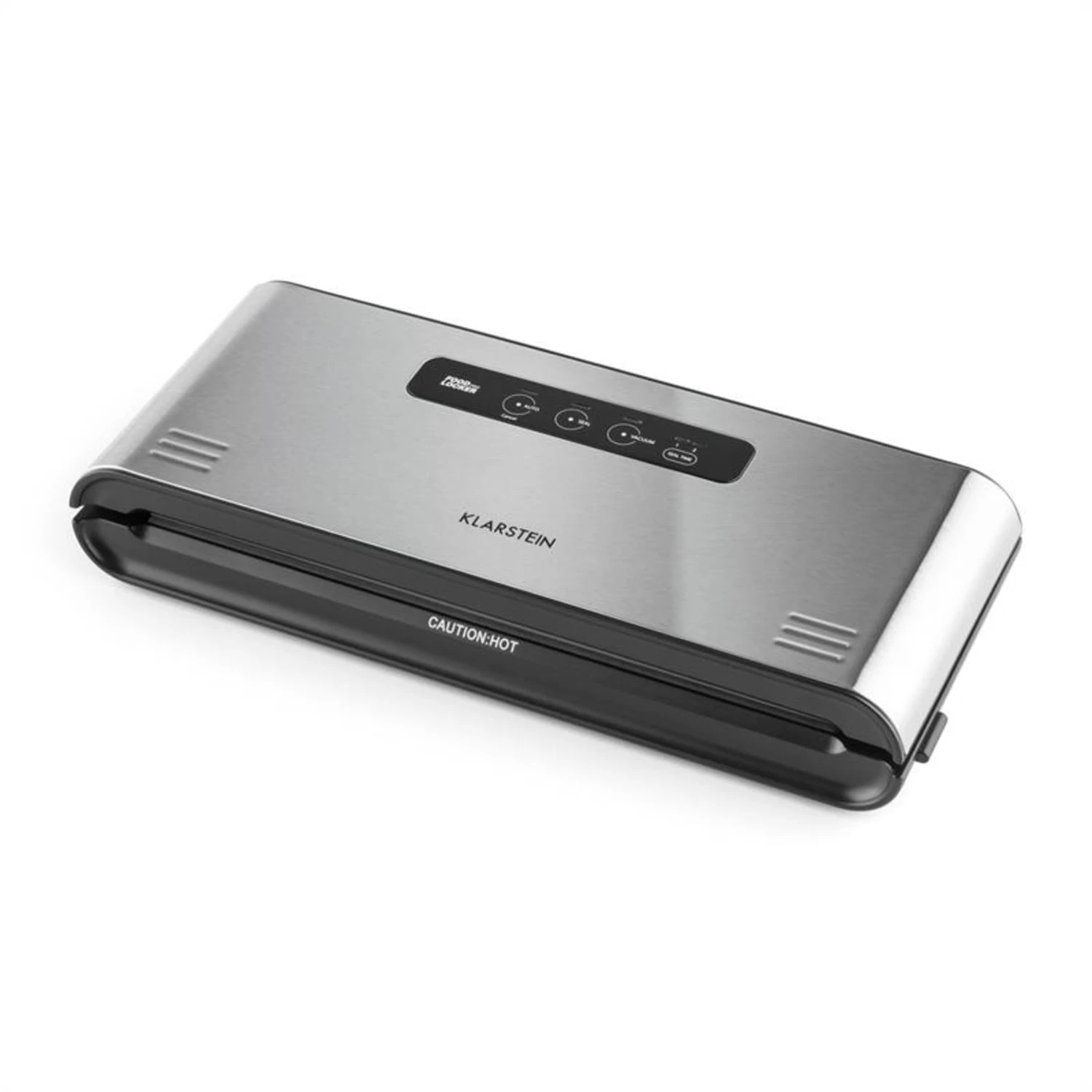 Für den schnellen Einstieg in das Kochen mit dem Sous Vide Verfahren kommt dasKlarstein Quickstick Sous Vide Set direkt mit dem passenden Klarstein Foodlocker Pro Vakuumierer. Flach, kompakt und leistungsstark: Der Foodlocker Slim ist anspruchslos im Platzverbrauch und arbeitet mit kraftvollen 120 Watt. Mit einer Saugkraft von bis zu -0,8 bar und einer Sauggeschwindigkeit von 12 l/min vakuumiert und versiegelt er Vakuumbeutel per Knopfdruck vollautomatisch. Empfindliche Lebensmittel wie Obst, Flüssigkeiten und Gewürze lassen sich dank der Pulse-Taste kontrolliert verschließen, ohne zerdrückt zu werden.