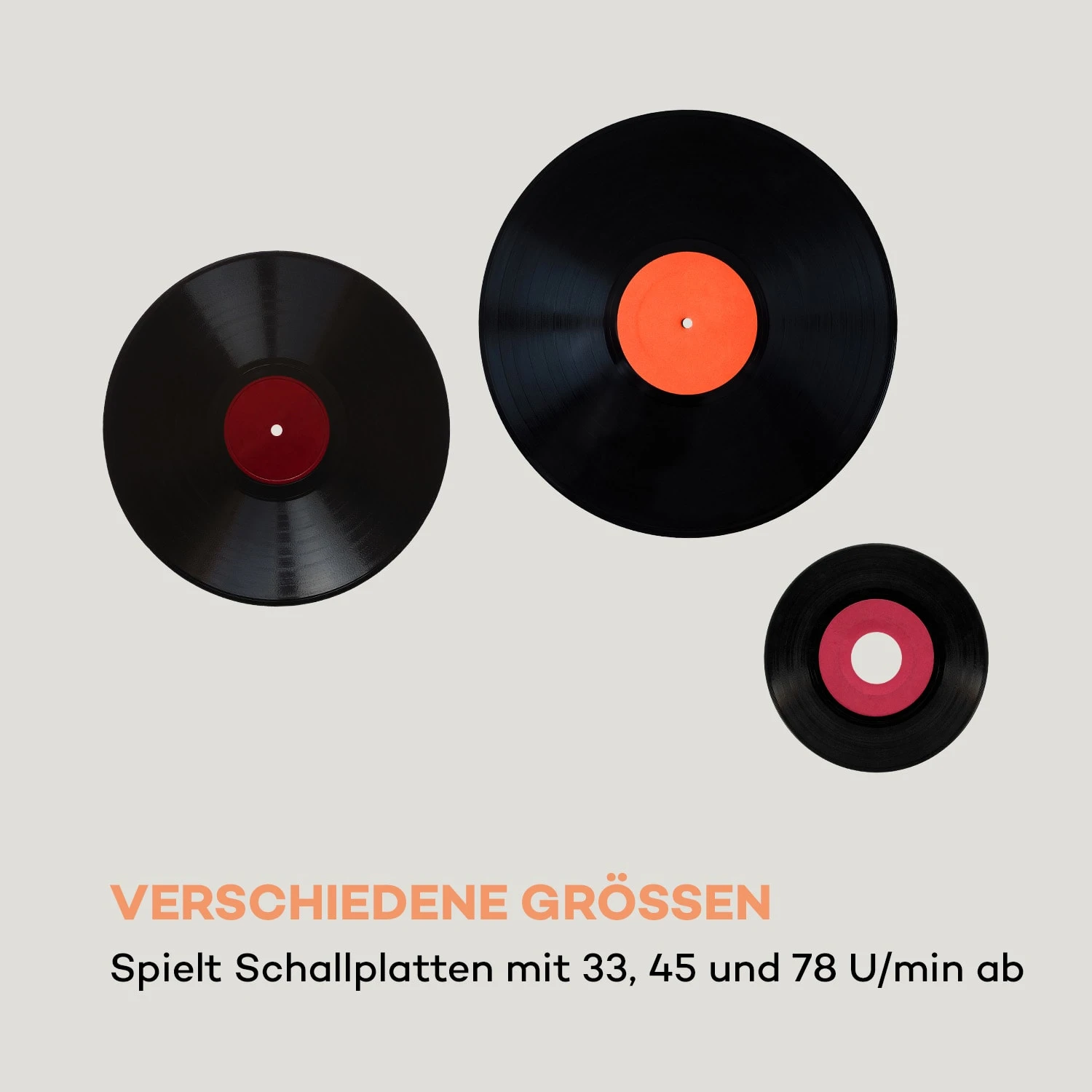 - unterstützte Wiedergabegeschwindigkeiten: 33, 45, 78 U/min