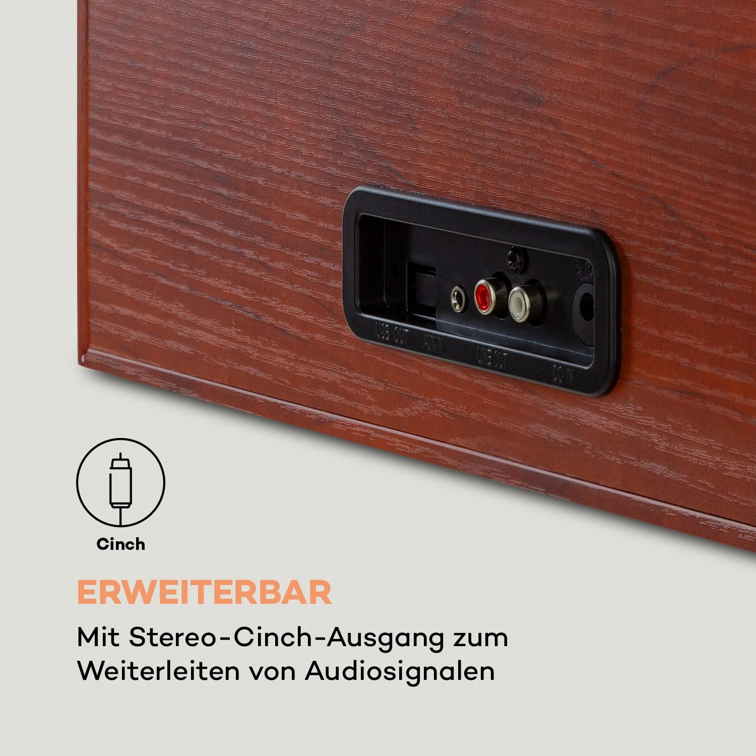 - Anschlüsse: Cinch-, USB- und SD-Card-Ausgang, Kopfhöreranschluss