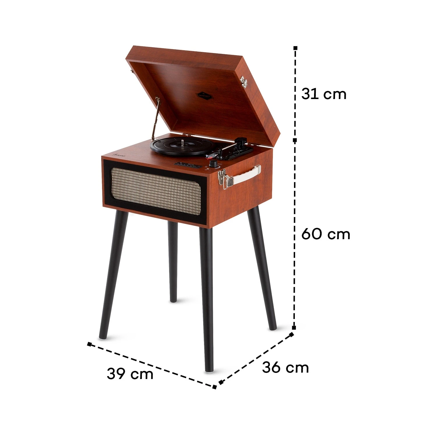 Obwohl er auf den ersten Blick wie ein elegantes Retro-Möbelstück aus den 50er-Jahren aussieht, ist Sarah Ann ein tragbarer Vinyl-Plattenspieler der Marke auna. Die Beine lassen sich sogar einfach abnehmen, was ihn zu einem äußerst abwechslungsreichen Design-Objekt macht!
