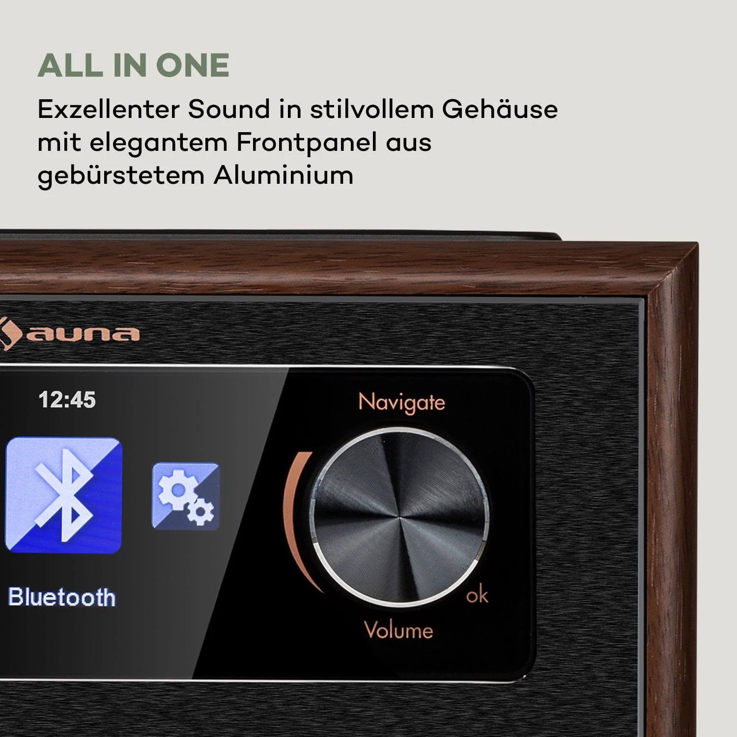 AUX-Anschluss und Bluetooth für das kabellose Streamen von Inhalten per Smartphone oder Tablet.