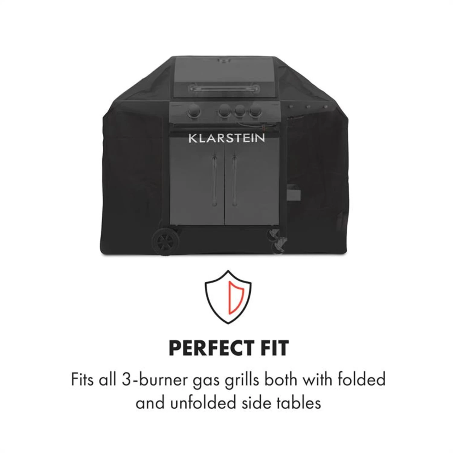 Der Klarstein Tomahawk 3.1 S Witterungsschutz-Cover passt perfekt auf den gleichnamigen Grill! Einfach überziehen und fertig, beschwerliches und zeitraubendes Umräumen und Einlagern entfallen in Zukunft komplett, denn der Grill bleibt einfach an Ort und Stelle. Das Regen-Cover passt natürlich auch auf anderen 3-Brenner-Gasgrills! Die extrem robuste Schutzhülle ist aus extra schwerem und robustem 300D Canvas-Tuch gefertigt. Das ist nicht nur wasser- und reißfest, sondern dank der Materialmischung aus 30% Polyester und 70% PVC auch ganz einfach abwischbar. So kann der Grill in Zukunft direkt an seinem Einsatzort stehen bleiben, ist vor Wind und Wetter geschützt und mit nur wenigen Handgriffen direkt einsatzbereit.