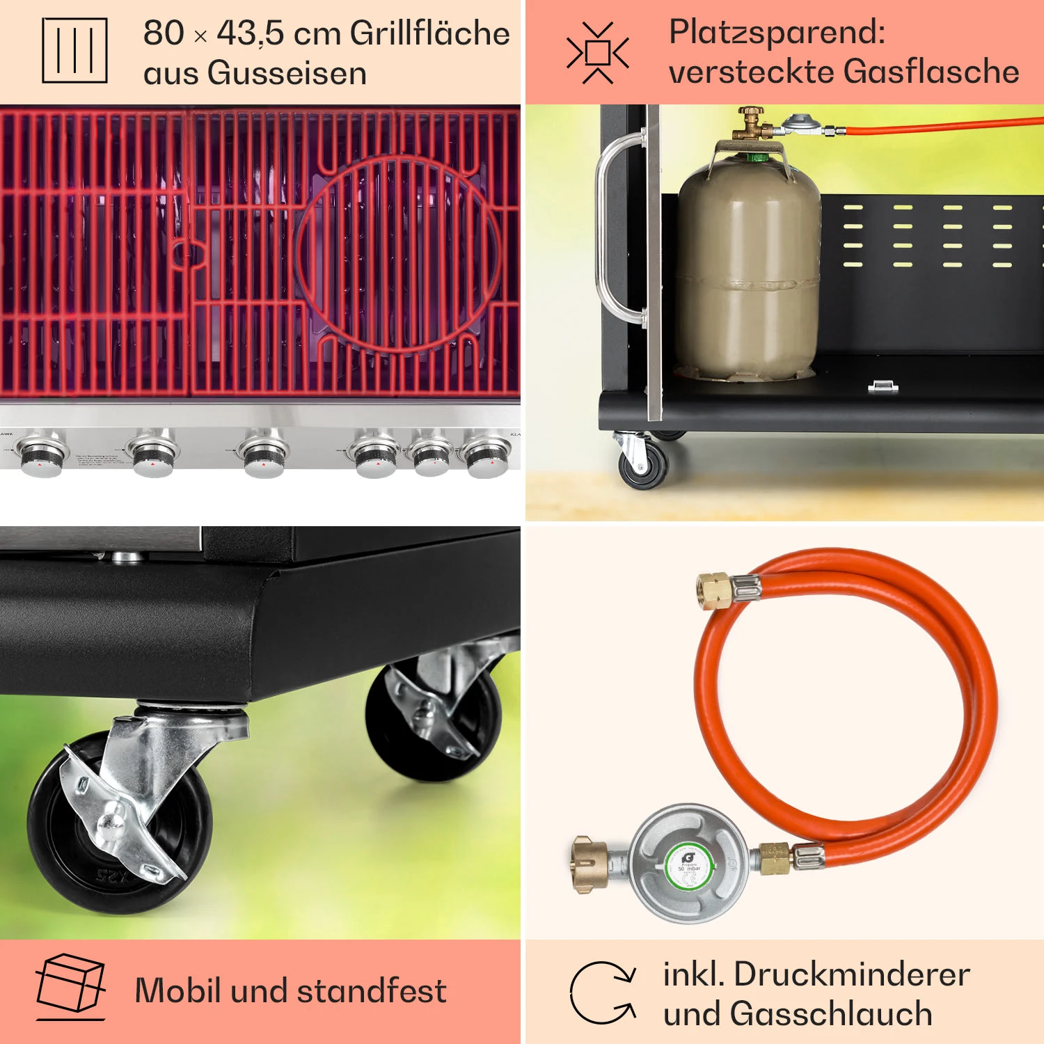 - ergonomisches Grillen dank idealer Arbeitshöhe von ca. 84,5 cm