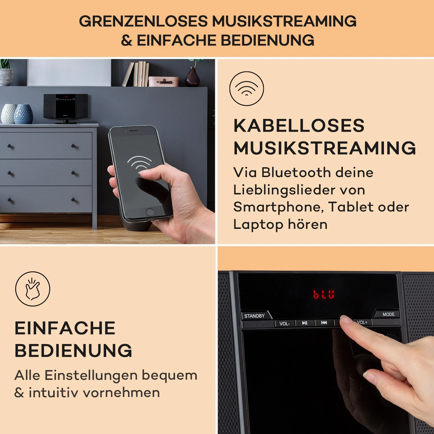 Die auna V14.2 Vertikal-Stereoanlage überzeugt mit einem sehr kompakten Design, vielen Funktionen und einem hochwertigen Klang.